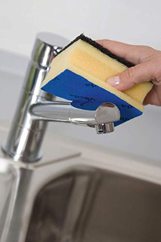 De zwarte schuurzijde van de spons verwijdert hardnekkig vuil bijzonder grondig, terwijl de blauwe kant vuil zacht opveegt