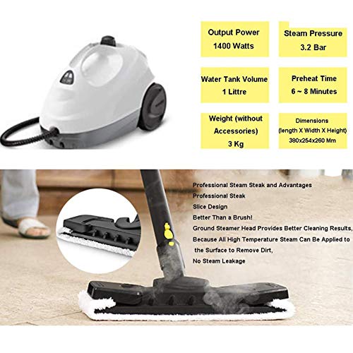 Specification: 1400w Stoommopreiniger Multifunctionele Nette Stoomreiniger met 7 Accessoires 1l Tank Stoomdruk 3,2 Bar voor Vloeren…