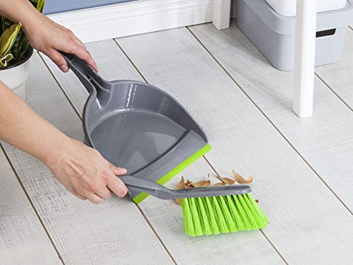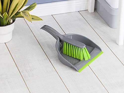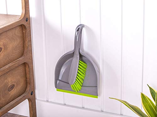 De handveger heeft bovendien een praktische hanger en de schep aan de rand een rubberen lip.