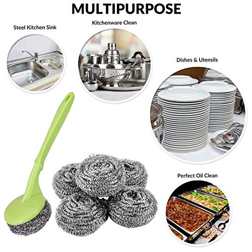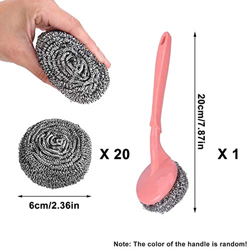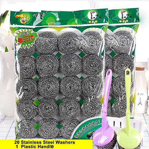 ❷ Het bevat 20 verwisselbare roestvrijstalen ringen en 1 plastic handvat in een combinatie om te voldoen aan uw behoeften voor het schoonmaken van uw vaat en kookgerei.